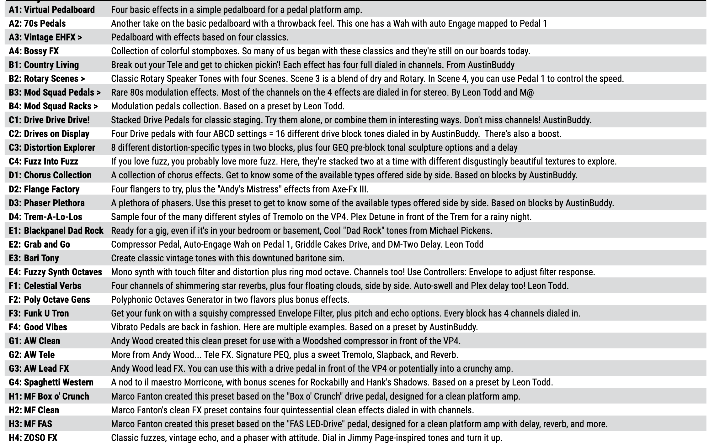 The wiki is being updated with information about the new AMP4 amp modeler. Completed: A-F.