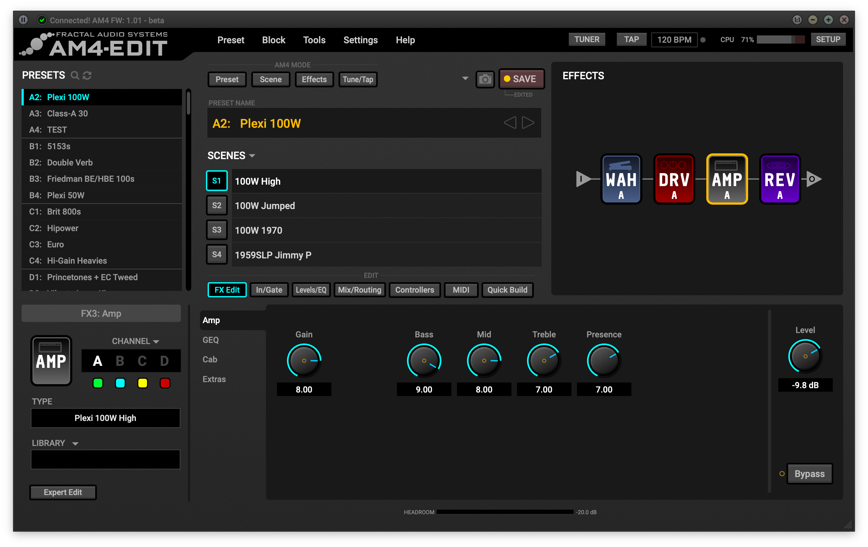 The wiki is being updated with information about the new AMP4 amp modeler. Completed: A-E.